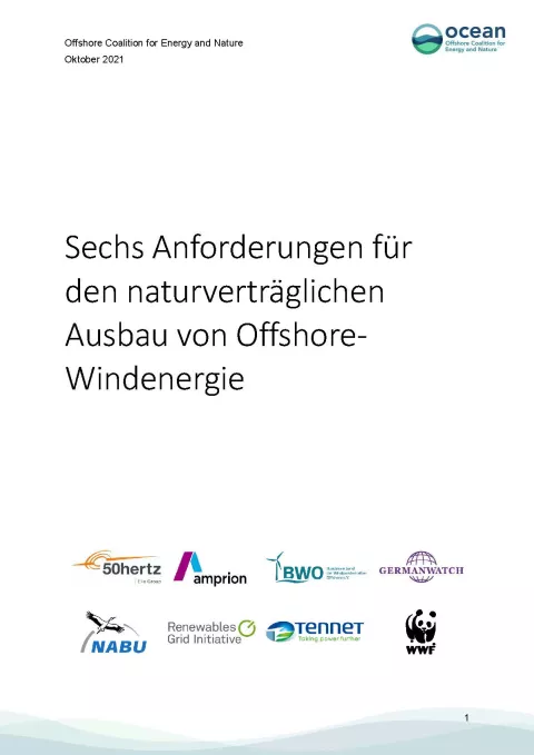 Zusammen mit weiteren deutschen Mitgliedern der europäischen Offshore Coalition for Energy and Nature (OCEaN) – einem Zusammenschluss aus Windparkbetreibern, Übertragungsnetzbetreibern, Umwelt- und Klimaschutzorganisationen – fordert Germanwatch die Koalitionspartner:innen auf, die folgenden wichtigen Maßnahmen in den Koalitionsvertrag aufzunehmen, um das Ziel der Klimaneutralität in Deutschland bis 2045 sowie die Umsetzung des Europäischen Klimagesetzes und der europaweiten Klimaneutralität bis 2050 erreichen zu können: