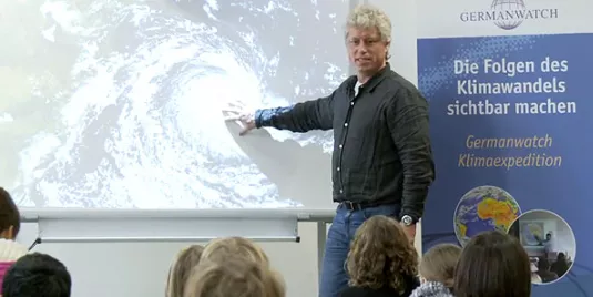 Die Germanwatch Klima- und Rohstoffexpedition ist ein Angebot für SchülerInnen der Klassen 5 bis 13. Es kann gebucht werden und kommt bundesweit an Schulen aller Schulformen. In Absprache mit den Lehrkräften werden spezifische Schwerpunkte gesetzt und die Schüler:innen können Antworten auf Fragen rund um den Klimawandel erarbeiten.