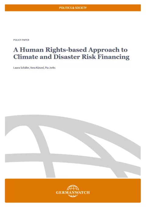 Climate and disaster risk financing (CDRF) measures and activities that governments or other actors carry out can affect the enjoyment of human rights. The Paris Agreement therefore recognises that, “Parties should, when taking action to address climate change, respect, promote and consider their respective obligations on human rights […]” (Paris Agreement 2015). This paper presents a human rights-based approach to Climate and Disaster Risk Financing (HRBA-CDRF). The HRBA-CDRF contains four guardrails and five principles, along with comprehensive guidelines including ‘necessary measures’ for implementing each principle. In accordance with the approach, CDRF instruments and activities should be developed, implemented, and evaluated so as to protect and promote enjoyment of human rights to prevent harm to communities and ecosystems, as well as for promoting sustainable development in the context of climate risk management.